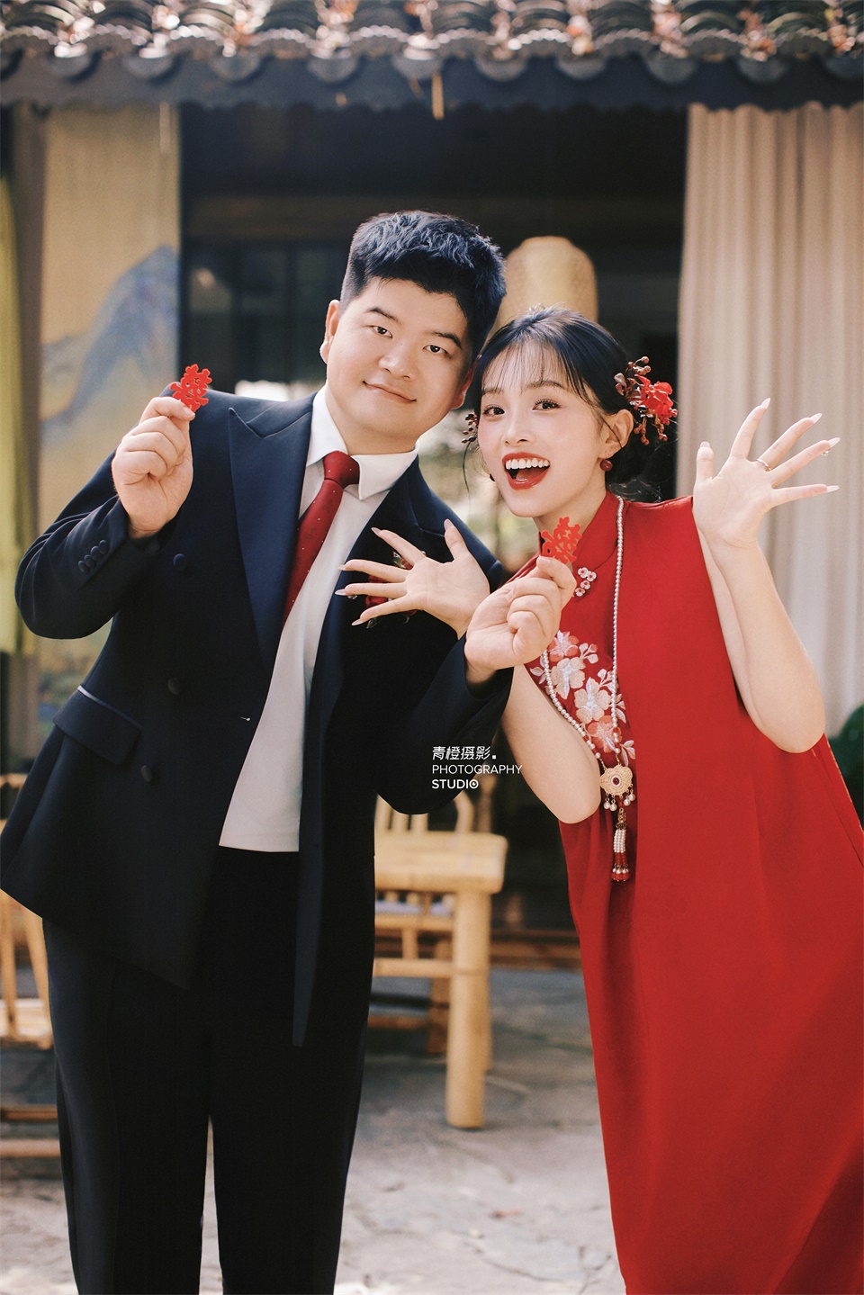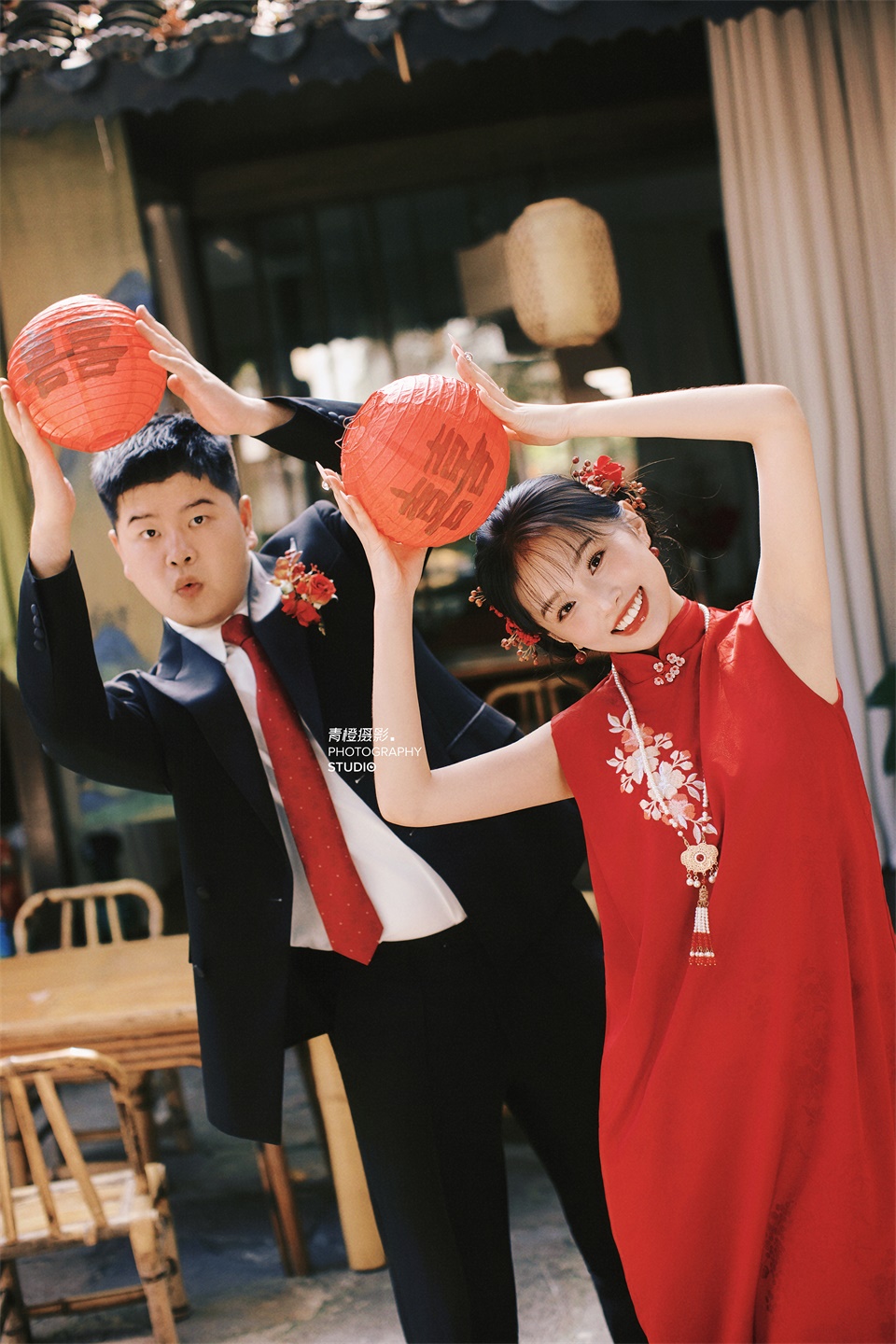 在老茶馆拍的喜嫁婚纱照,俏皮甜美也太乖噜~