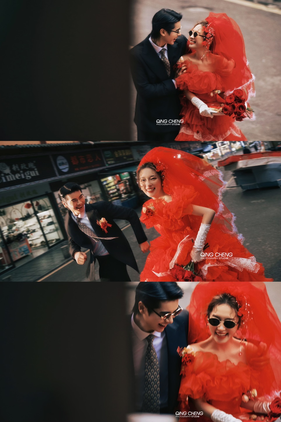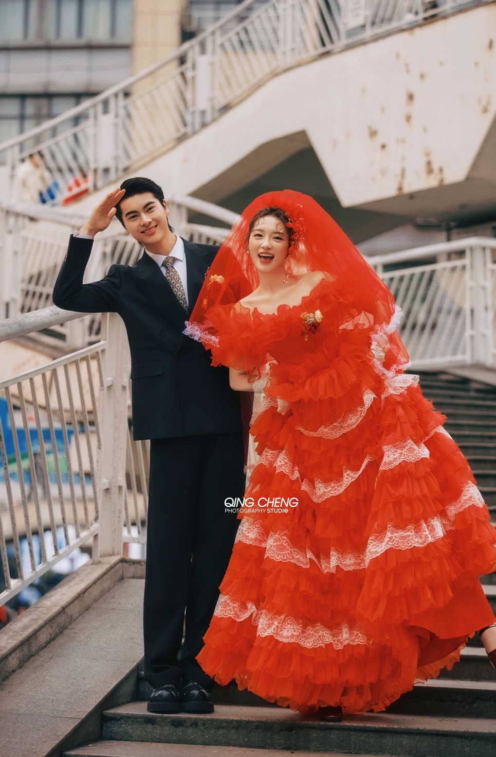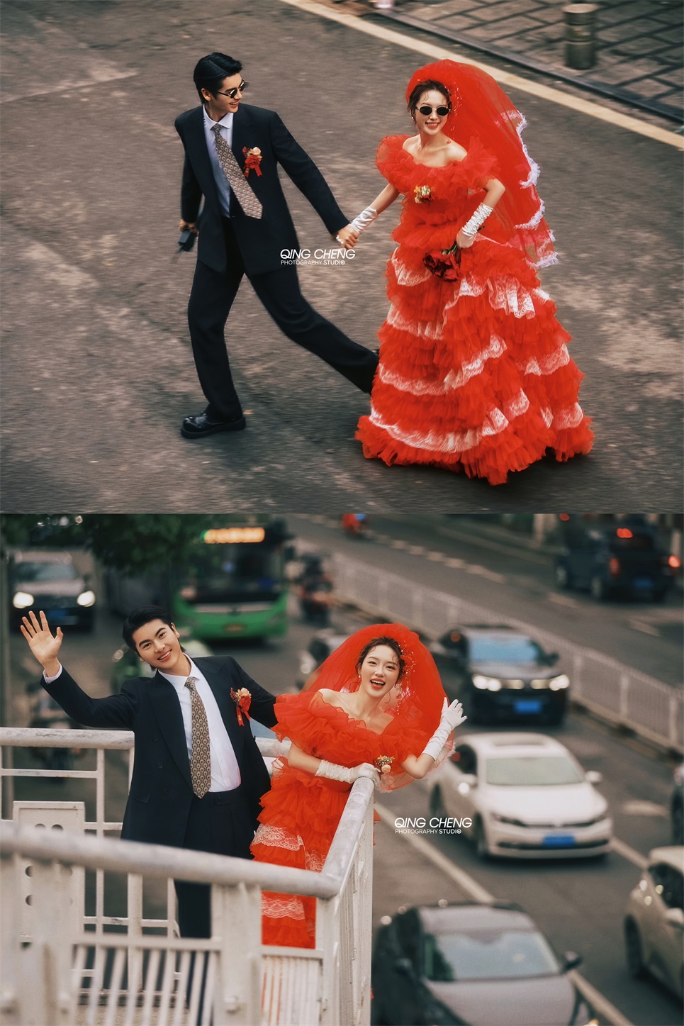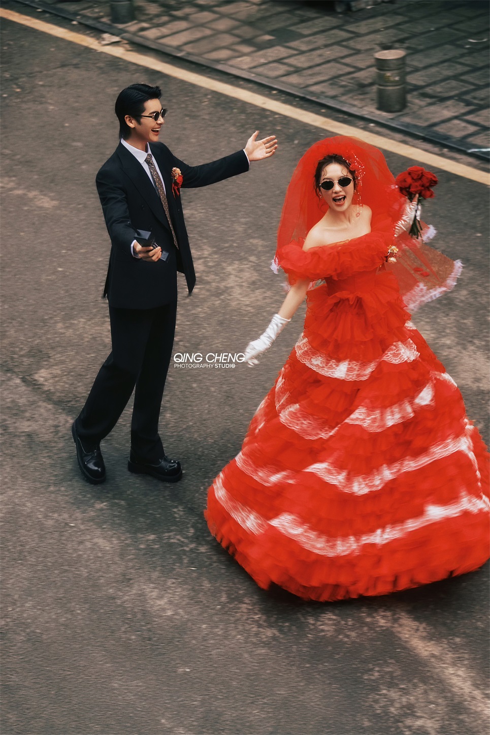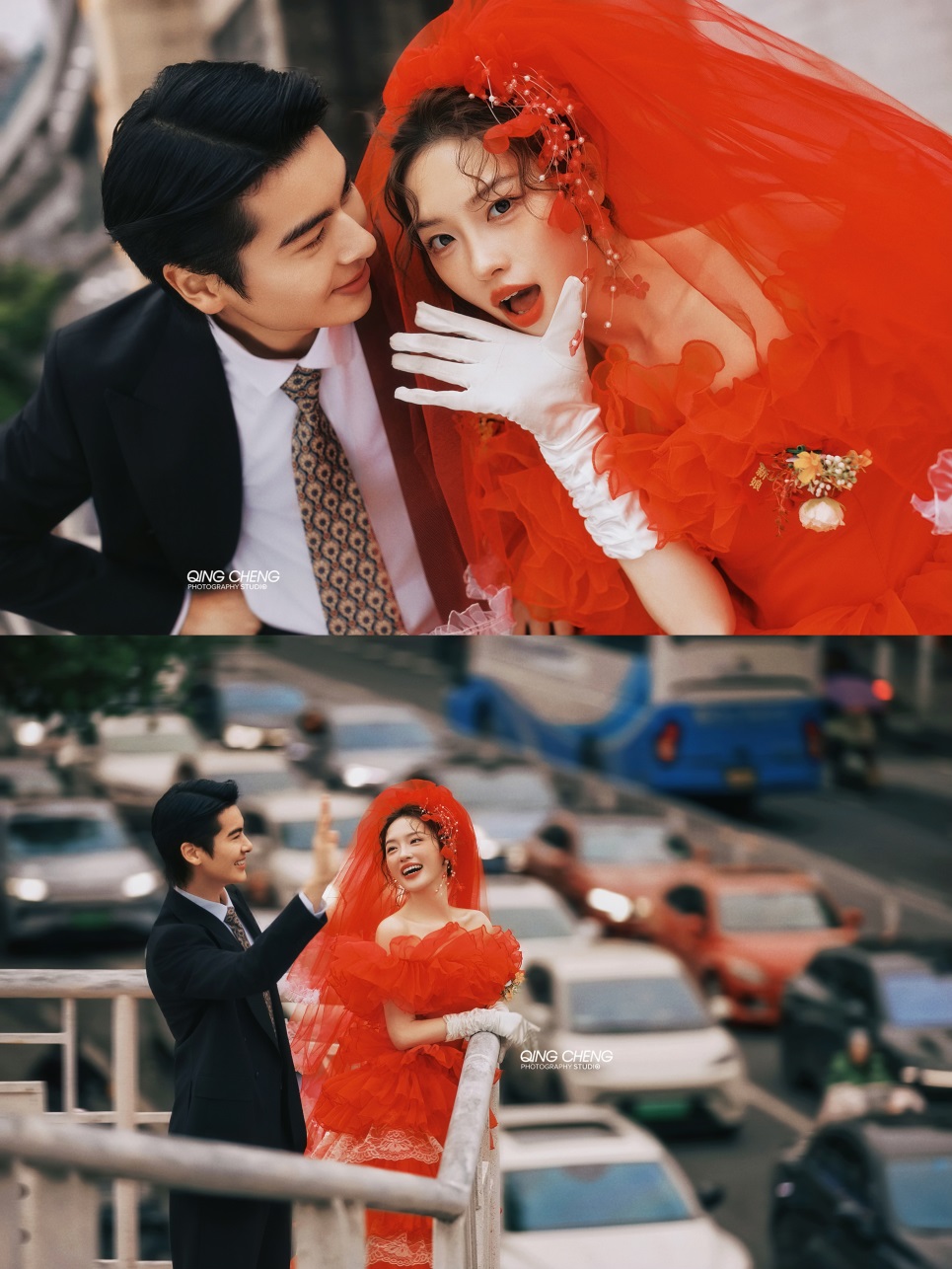 【外景】明媚小姨既视感,大红裙港风婚纱照太吸睛了