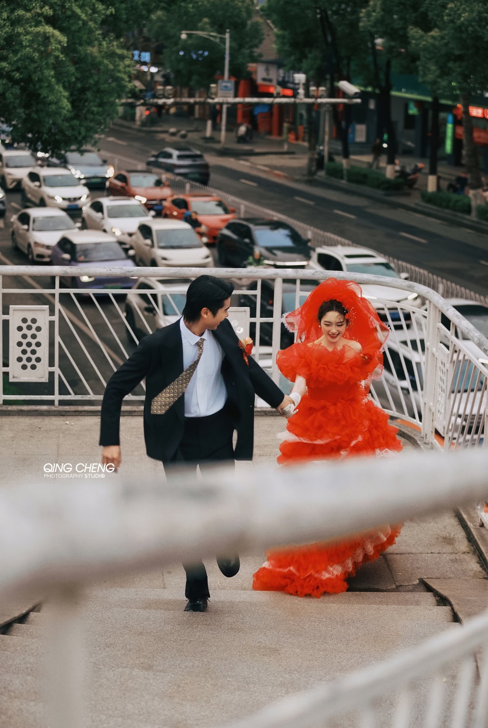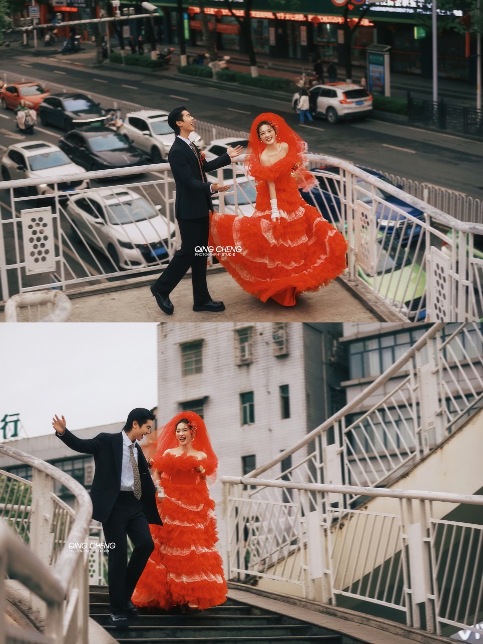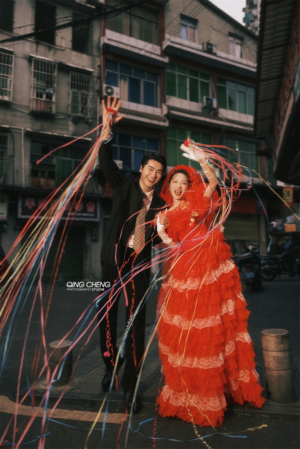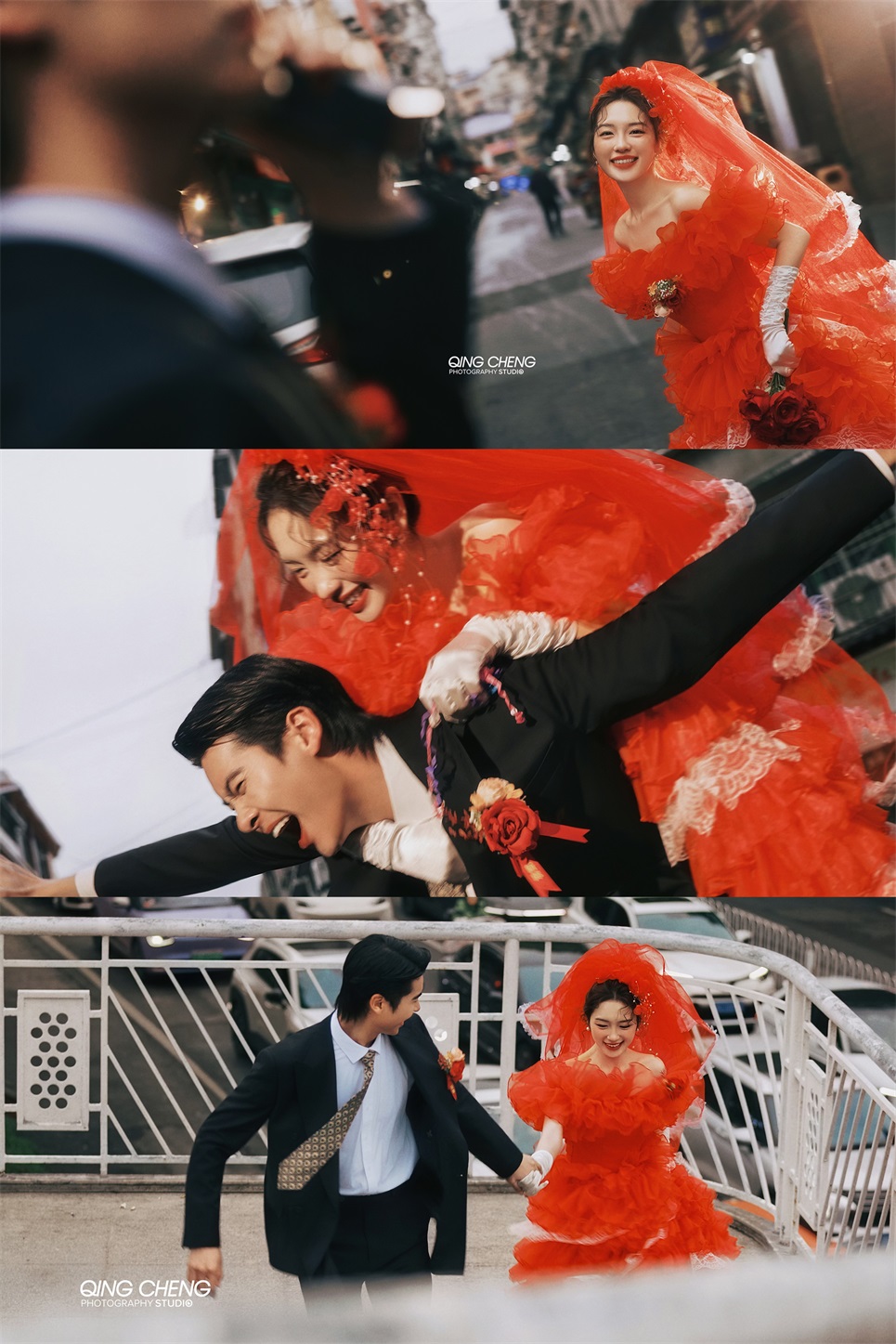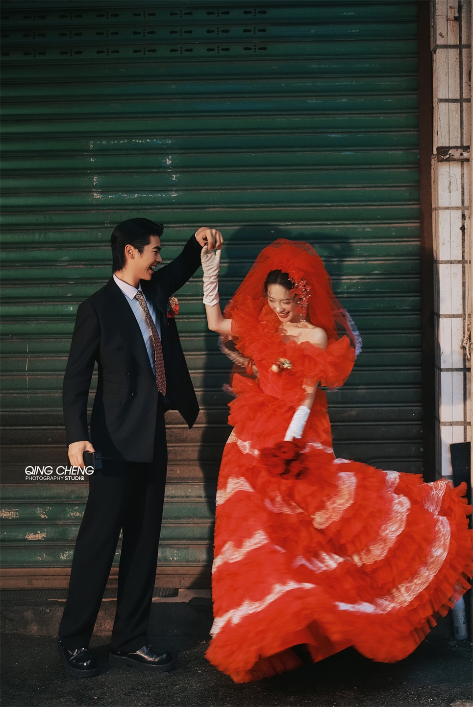 【外景】明媚小姨既视感,大红裙港风婚纱照太吸睛了